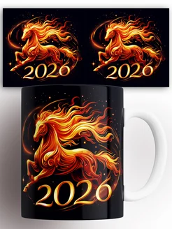 Кружка с принтом Красная огненная лошадь 2026