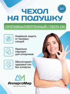 Наволочка защитный чехол на подушку противоаллергенный 70х70