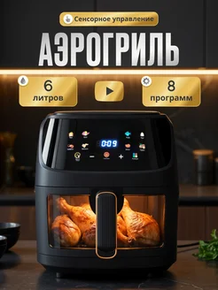 Аэрогриль электрический для дома 6 литров с решеткой чашей