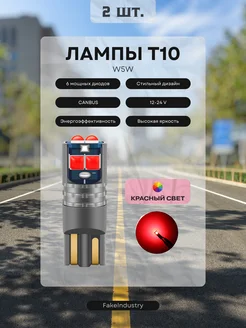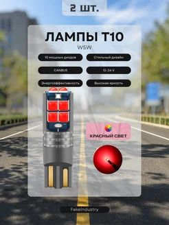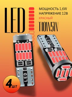 LED-лампы T10 W5W с красным свечением 10 ярких диодов 2 шт
