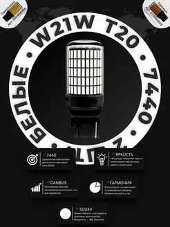 LED лампы W21W T20 7440 белые для ходовых огней 2 шт