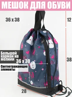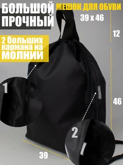 Мешок рюкзак сумка для обуви большой с карманом на молнии