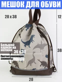 Мешок для обуви для сменки для мальчика с карманом на молнии