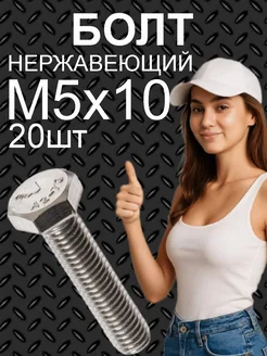 Болт нержавеющий м6х20 мм DIN933 с гайкой и шайбой, 10шт