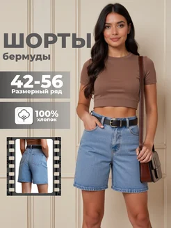 Шорты джинсовые удлиненные бермуды с высокой посадкой