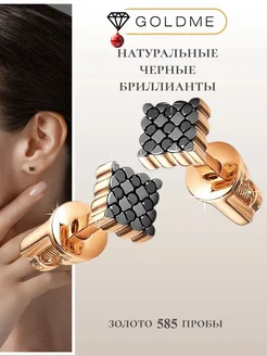 Серьги-пусеты гвоздики золотые 585 с черными бриллиантами