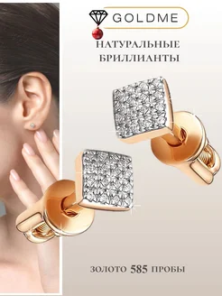 Серьги-пусеты гвоздики золотые 585 с бриллиантами