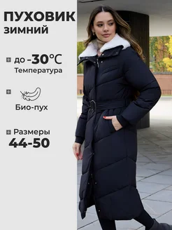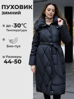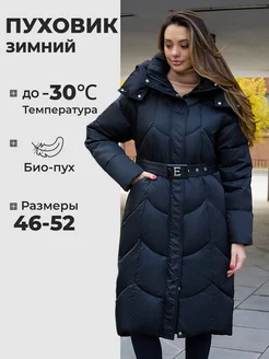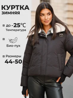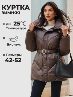 Куртка зимняя с капюшоном короткая оверсайз с поясом