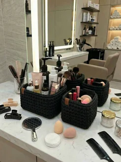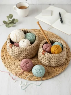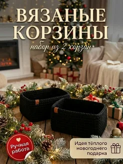 Вязаные корзины для хранения из шнура набор 2 шт