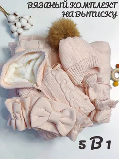 Вязаный конверт на выписку новорожденного, комплект 5в1