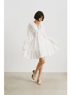 Легкое летнее платье бохо с открытыми плечами воланами