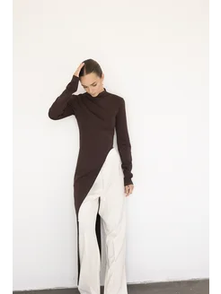 Асимметричный лонг топ длинный теплый осенний с горлом