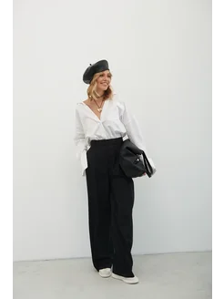 Брюки черные палаццо с защипами на учебу широкие