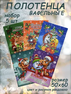 Полотенца кухонные вафельные новогодние набор 5 шт 50х60