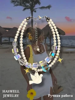 Колье чокер с птичкой голубка и лунным камнем бижутерия