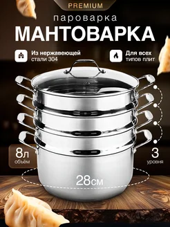 Мантоварка нержавейка для индукции пароварка для плиты 28 см