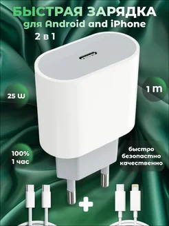 Быстрая зарядка, 2 шнура в одном для iphone и android 1 метр