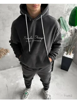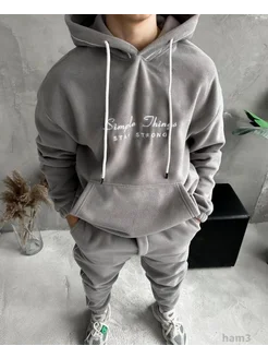 Костюм спортивный на флисе плюшевый с капюшоном оверсайз