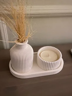 Ваза для сухоцветов мини интерьерный набор из белого гипса