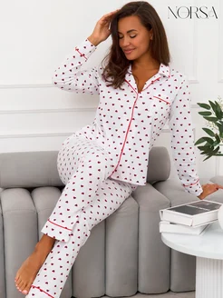 Пижама со штанами хлопок домашняя для сна новогодняя
