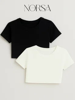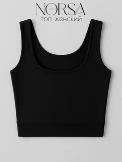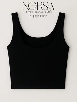 Кроп топ в рубчик лапша двойной вязки черный под пиджак