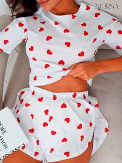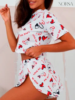 Пижама с шортами и футболкой сердечки ночная одежда