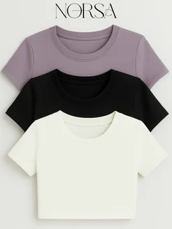 кроп топ приталенный укороченный набор 3 шт
