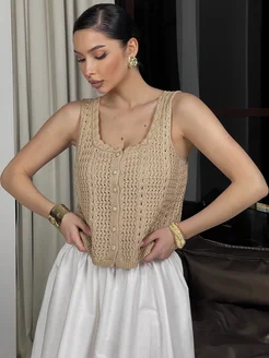 Топ кроше вязаный нарядный с пуговицами на бретелях