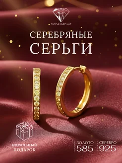 Серьги кольца серебро 925 конго серебряные позолоченные