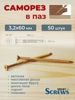 Саморезы для вагонки, паркета, доски пола 3.2х60 мм, 50 шт