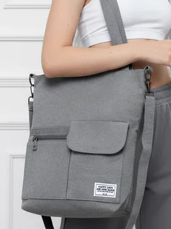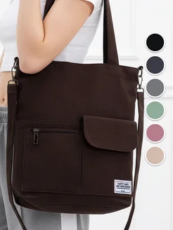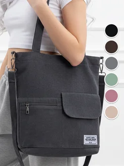 Сумка шоппер тканевая на молнии через плечо