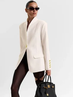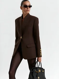 Пиджак прямой классический удлиненный с золотыми пуговицами