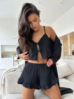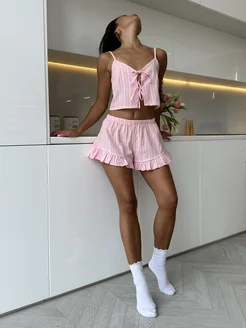 Пижама с шортами хлопковая, комплект домашний сексуальный