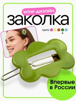 Зеленая заколка-цветок для волос