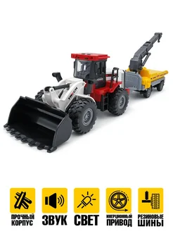 Большой колесный трактор с ковшом светом и звуком