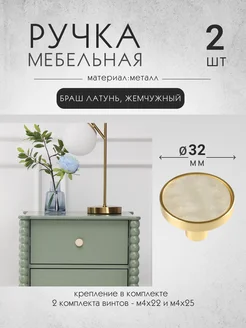 Ручки на шкаф кнопки 2 шт латунь+жемчужный
