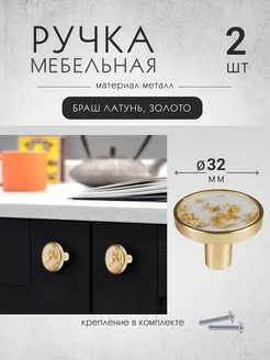 Ручка кнопки мебельная 2 шт латунь+золото