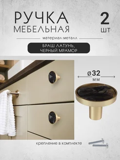Ручки для мебели золотые+черный мрамор 2 шт