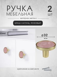 Ручки мебельные кнопки 2 шт розовый+латунь