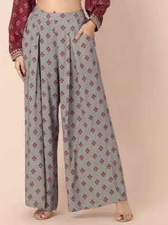 Брюки палаццо серо-зеленые, размер M