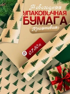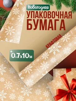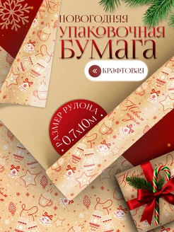 Упаковочная бумага новогодняя подарочная крафт рулон 10 м