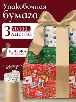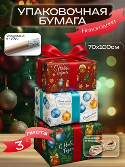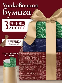 Упаковочная бумага новогодняя набор 3 листа Пожелания