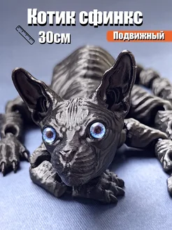 Котик сфинкс 30см подвижный черный 3D антистресс игрушка
