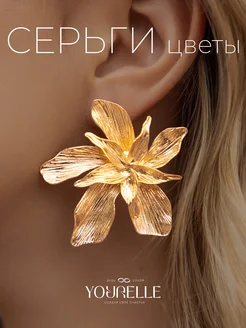 Серьги цветы крупные золотые