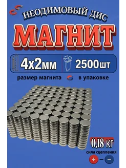 Магнит неодимовый сильный диск 4х2 мм-2500 шт