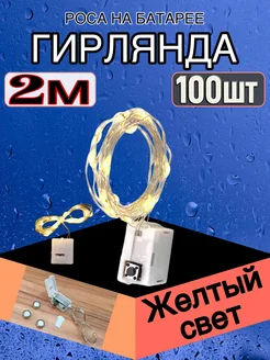 Гирлянда на батарейках 2 метра желтый свет 100 шт