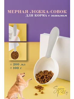 Мерная ложка-совок для корма с зажимом
