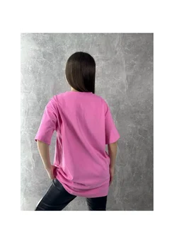 Футболка оверсайз удлиненная базовая с принтом хлопок