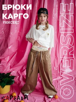 Брюки коричневые Карго широкие оверсайз унисекс 42-58р