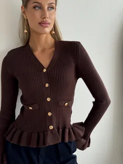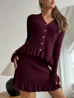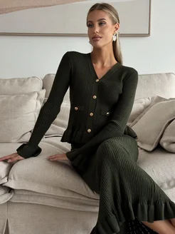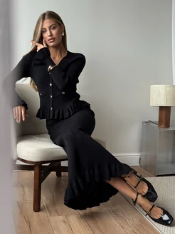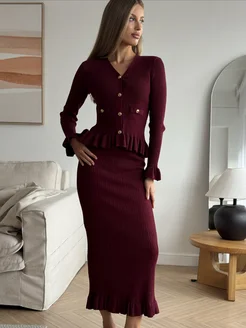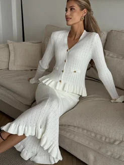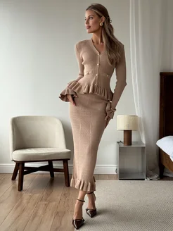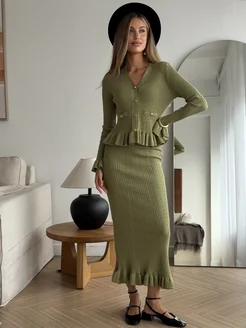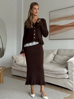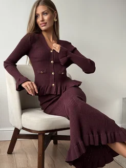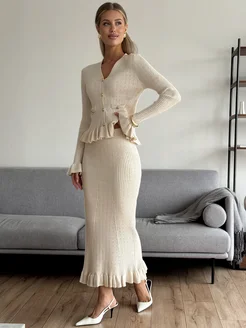 Костюм кардиган трикотажный с длинной юбкой вязаный